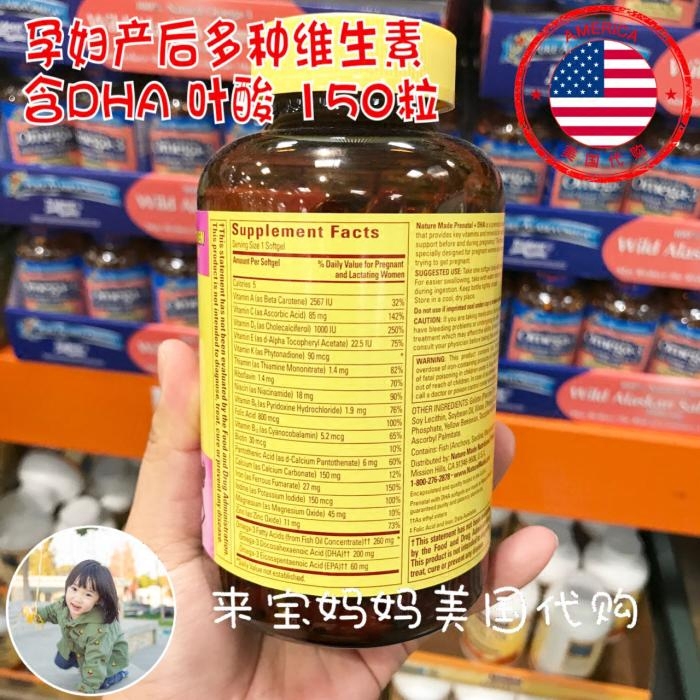 American Nature Made Maternity Multivitamin contains 150 capsules of folic acid for pregnant women with DHA