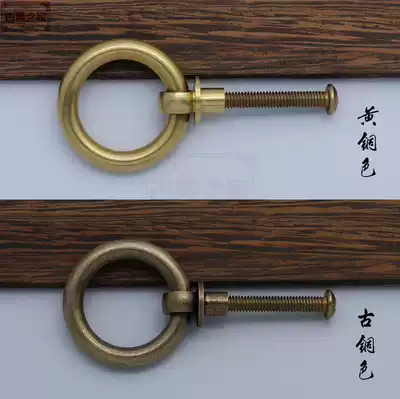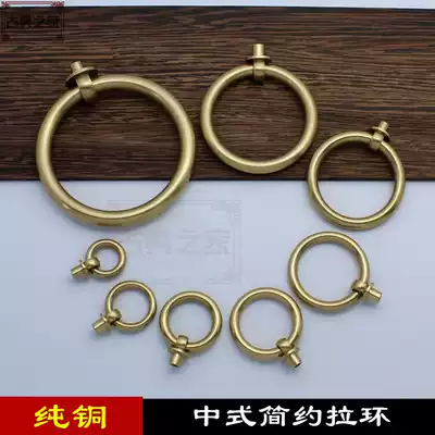Pure copper ring cabinet door drawer handle copper pull ring seamless ring Chinese antique simple copper ring handle