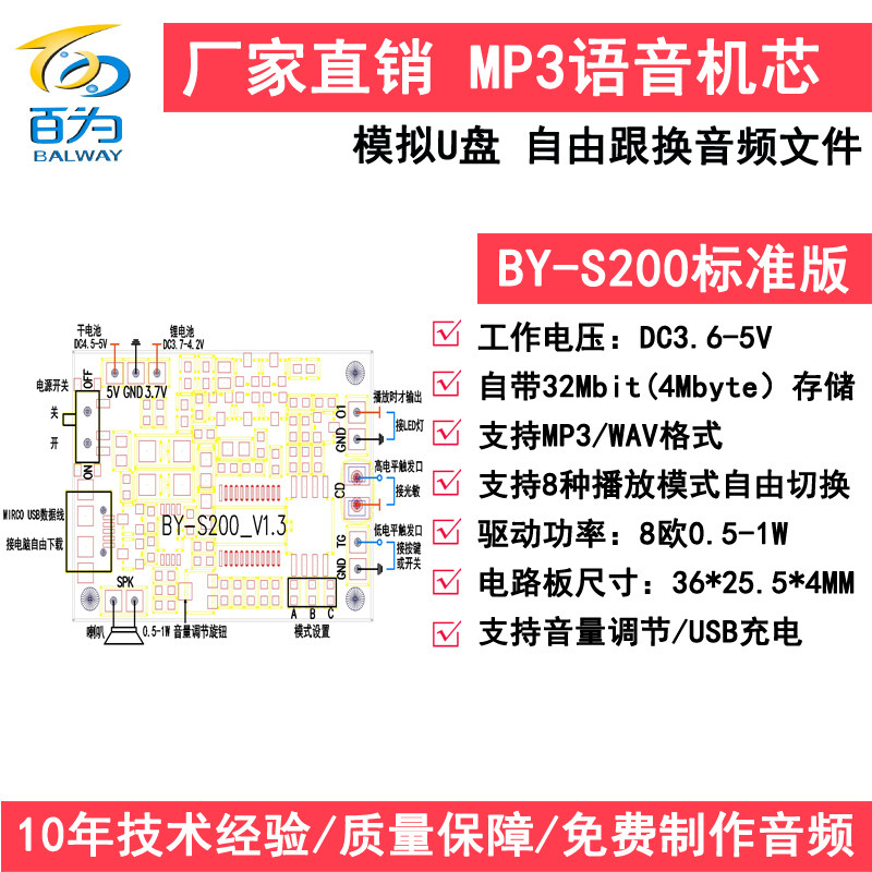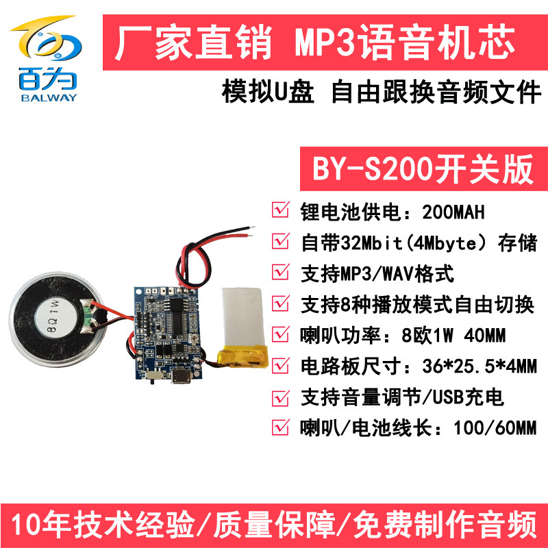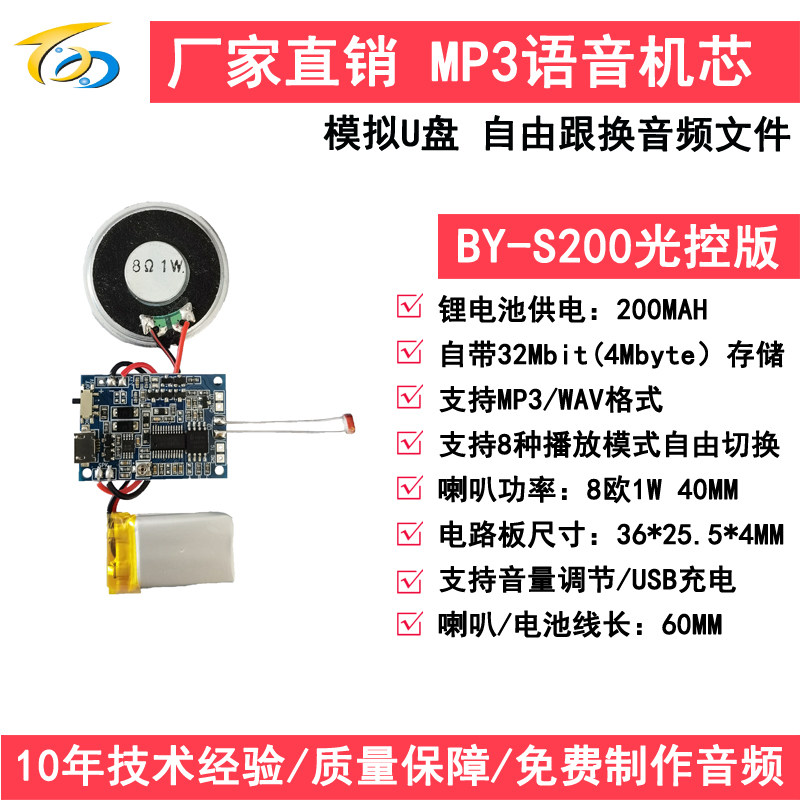 New MP3 light control Music greeting card movement toy sound playback voice module can be connected to the light with BY-S200