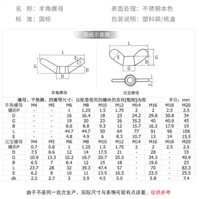 304 201 stainless steel butterfly nut wing horn nut nut ingot screw cap ingot screw cap M3M4M5M6M8M10M12