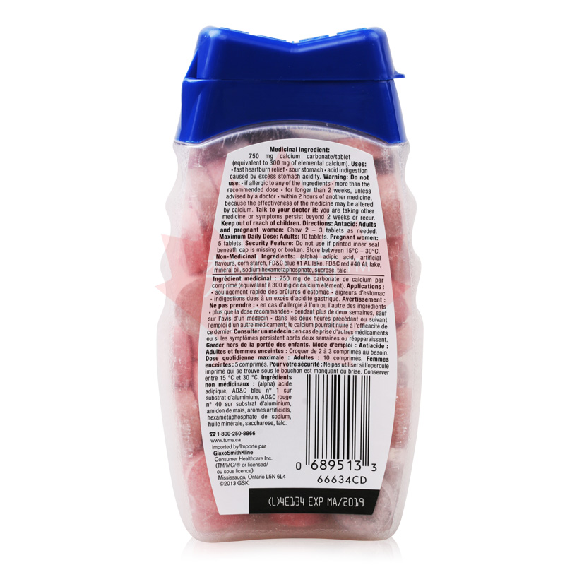 Spot Canadian original TUMS anti-gastric acid chewable calcium tablets 750 mg elderly pregnant women taking safe