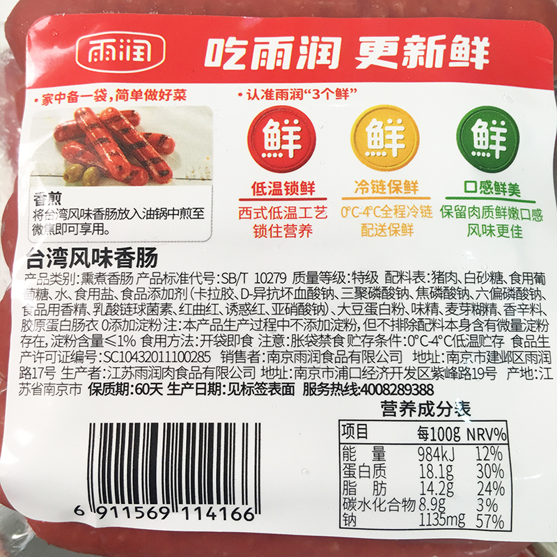 Rain Moisturizing Taiwan Flavor Sausage 300g Package No Starch Pure Meat Grilled Sausage Hot Dog Pizza Ingredients Ready-to-eat