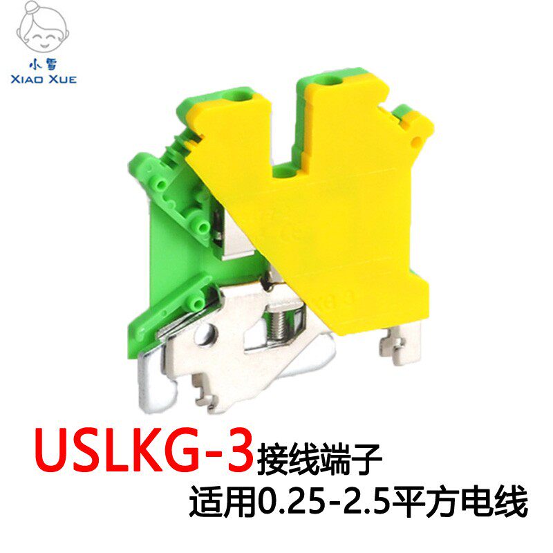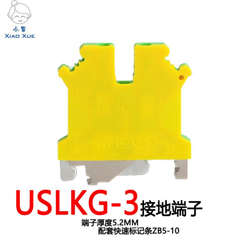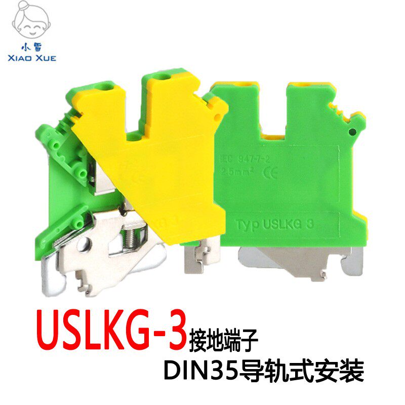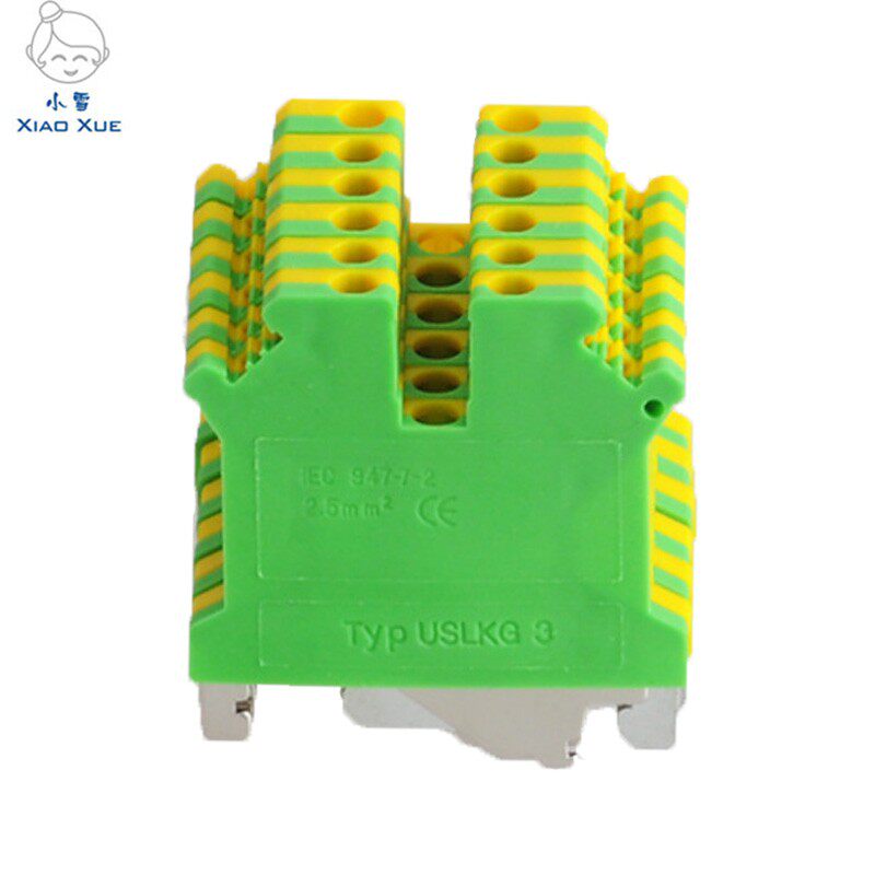 Yellow Green ground terminal USLKG-3 DIN rail terminal PE terminal row UK-3JD TS35 rail terminals