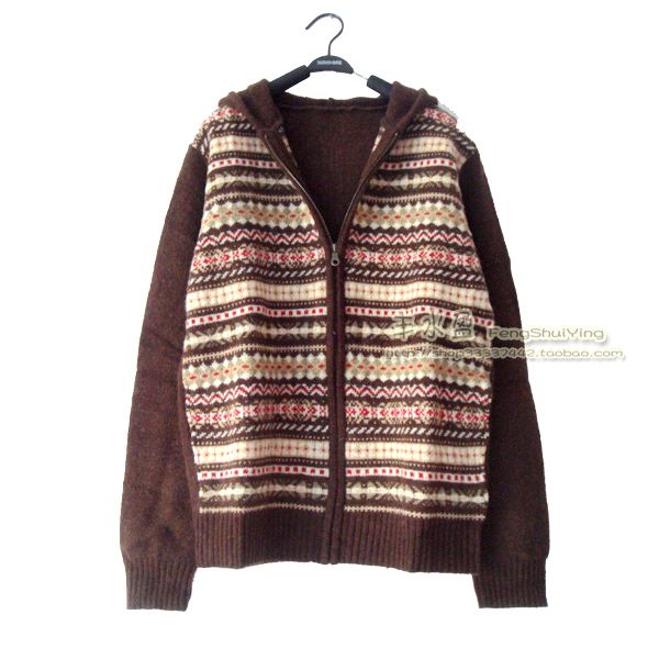 Japanese single winter new export thick men's jacquard zipper hooded oblique sweater pure wool sweater jacket 188 yuan