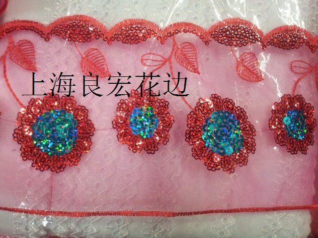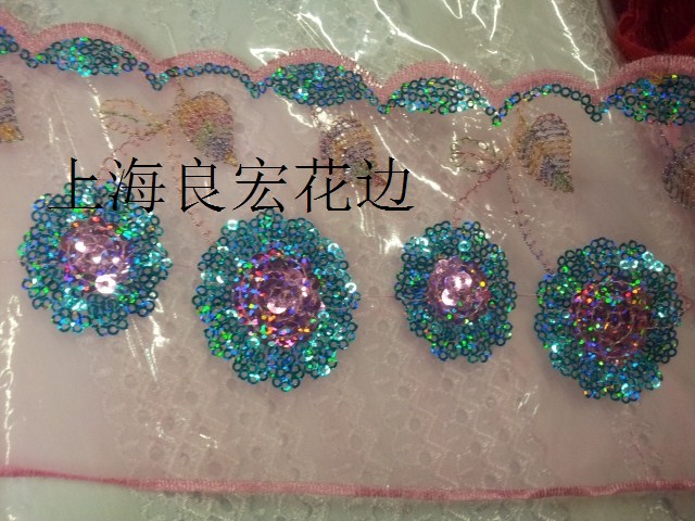 12cm wide pink gold and silver lace trim DIY beaded sequins 30 yuan a 10 yard