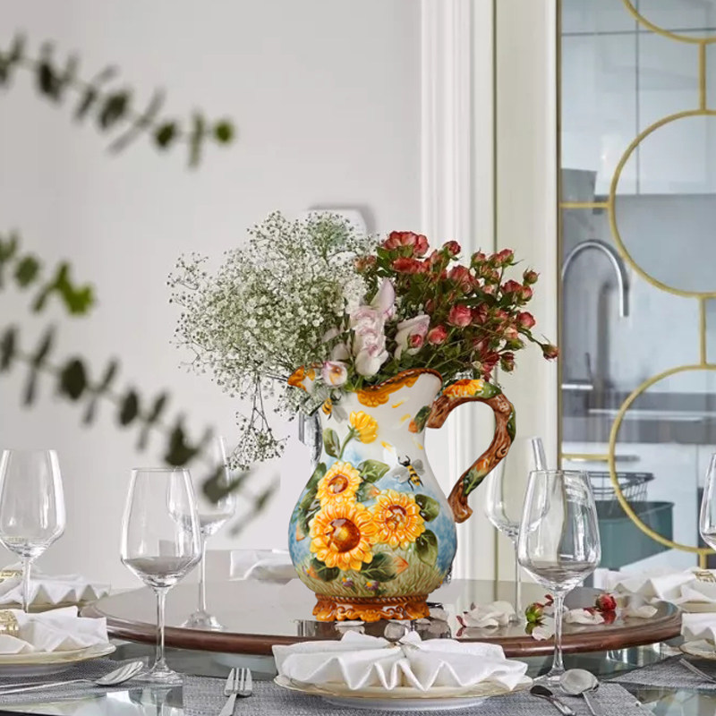 American Sunflower Ceramic Pot Decoration Vase High-grade Sunflower Home Features Hydroponic Vase New Home Decoration