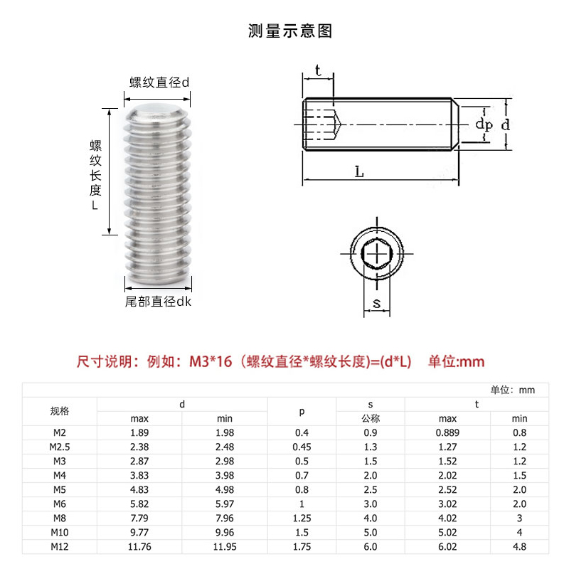 M8M10M12M14M16 stainless steel 304 inner hexagonal flat end tightening screw without head wire stop pay machine Mitop silk-Taobao