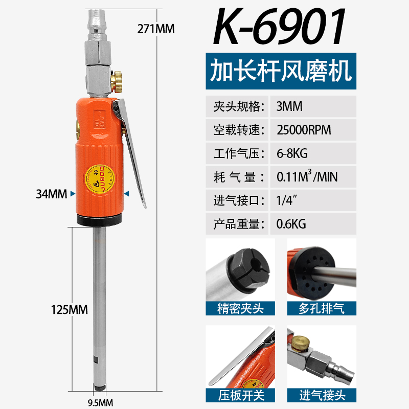 Giant cypress pneumatic K-6901 extended rod air mill 3mm collet industrial grade engraving machine efficient and fast grinding machine