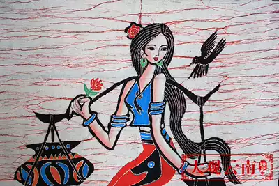 Medium batik painting cotton wall hanging ethnic craft gift decoration home fabric Mural bar dining room decoration hanging painting water