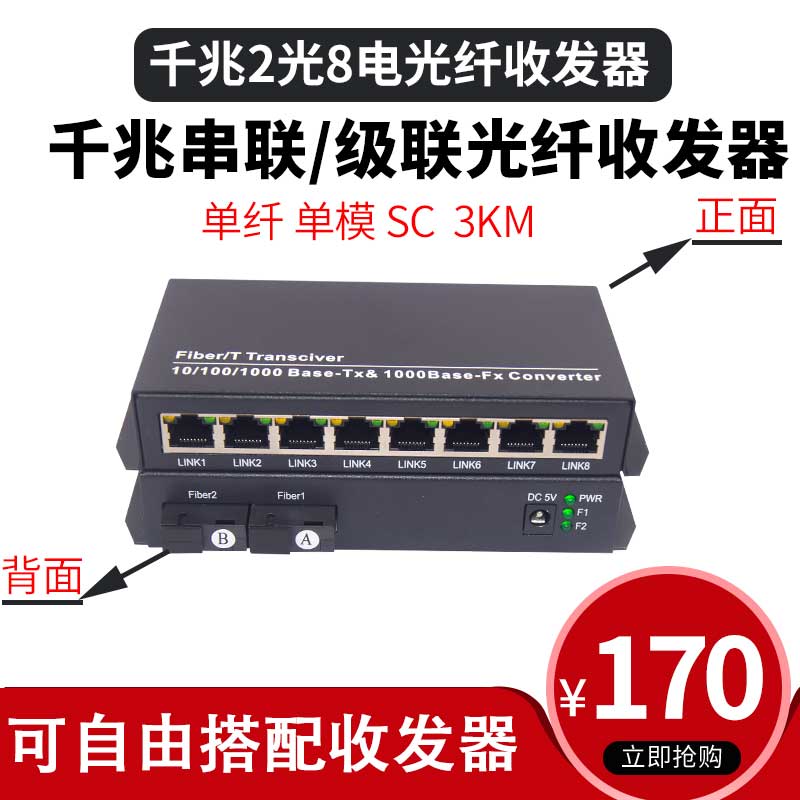 100M Gigabit 8 Optical 2 electrical 2 Optical 2 electrical 2 Optical 4 electrical 4 optical 1 electrical switch Cascade aggregation ring fiber optic transceiver