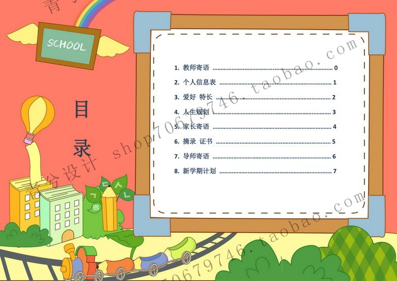 Horizontal version A4 primary school student growth book Children's record file memorial book word template A boy colorful version of 15 pages