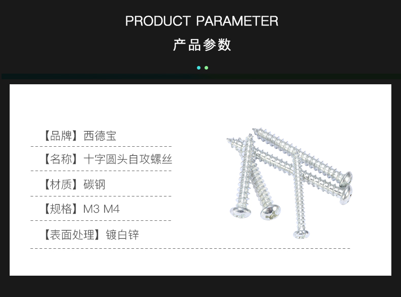 Bulk press catty M3M4 self-tapping screws Galvanized crosshead Aluminum alloy plastic bulging pan head countersunk head