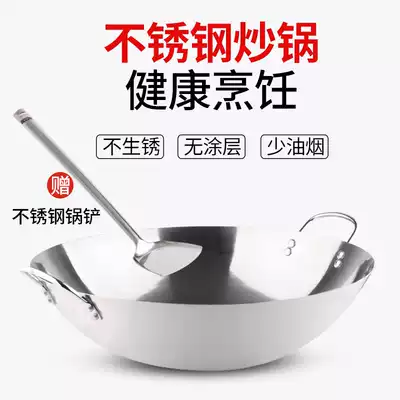 Binaural stainless steel wok household wok canteen Wok restaurant chef special large pot handle thick handle