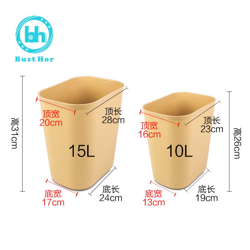 Household guest room large trash can thickened plastic square lidless trash can Kitchen powder room trash can paper basket