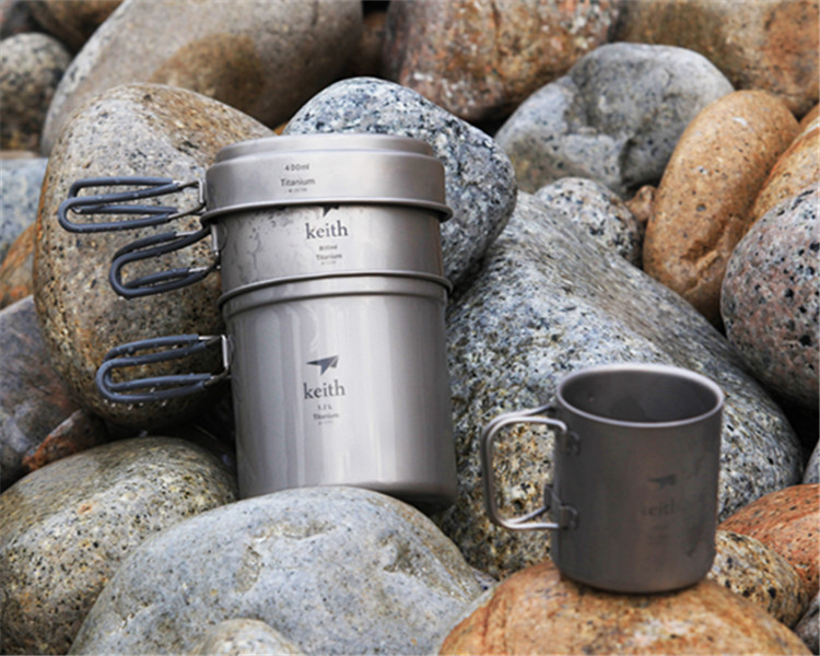 KEITH sheathed pure titanium cover pan TI6014 three sets of cookware titanium pan 400800 1200ml