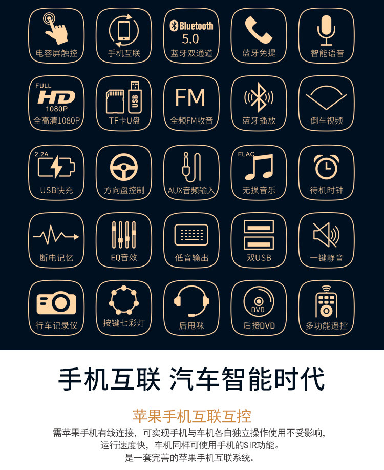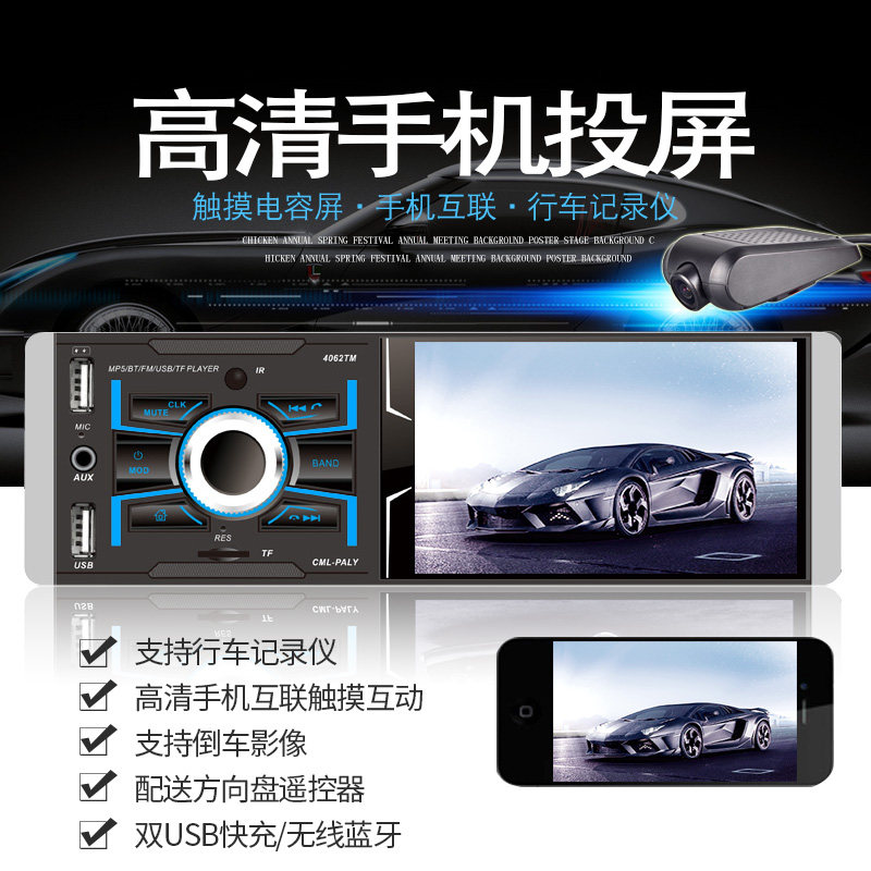 Carplay screen sound control 5188C Bluetooth 12V special Bluetooth 4022D reverse version 12V5 1 inch large screen sound control 5188 screen 12V5 1 inch large screen sound control