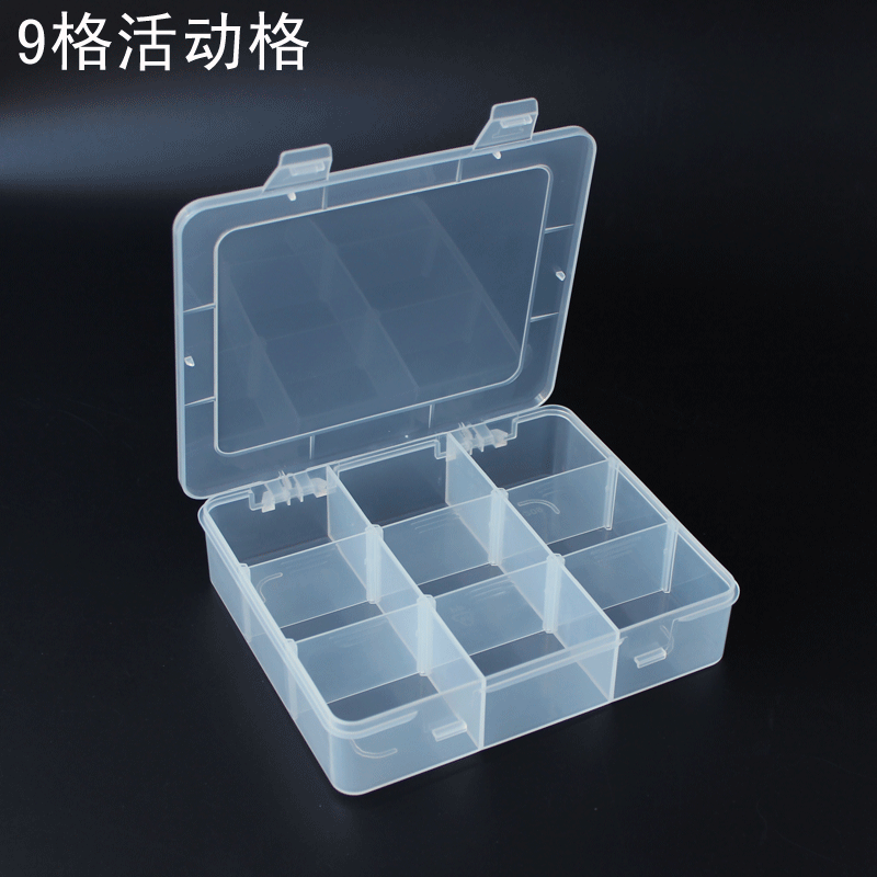 Nine-grid component box, parts box, manicure tool box, transparent hardware storage, plastic box, electronic accessories box, activity grid