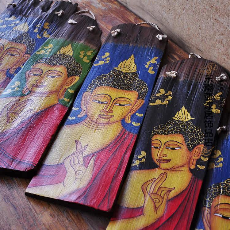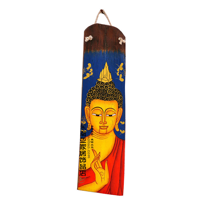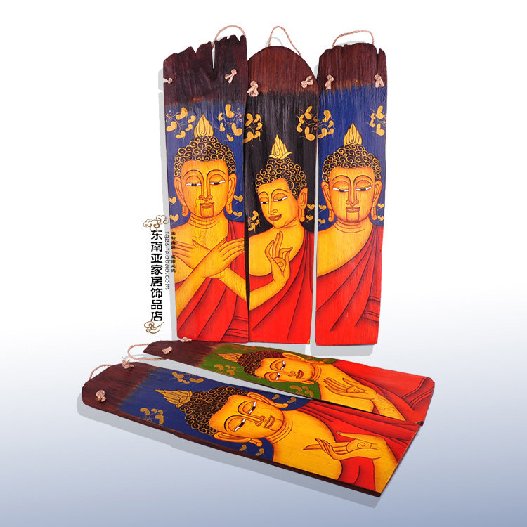Thai Specialty Imported Handicrafts Solid Wood Teak Teak Buddha Hanging Board Creative Painting Wall-mounted Pendant Wall Decoration