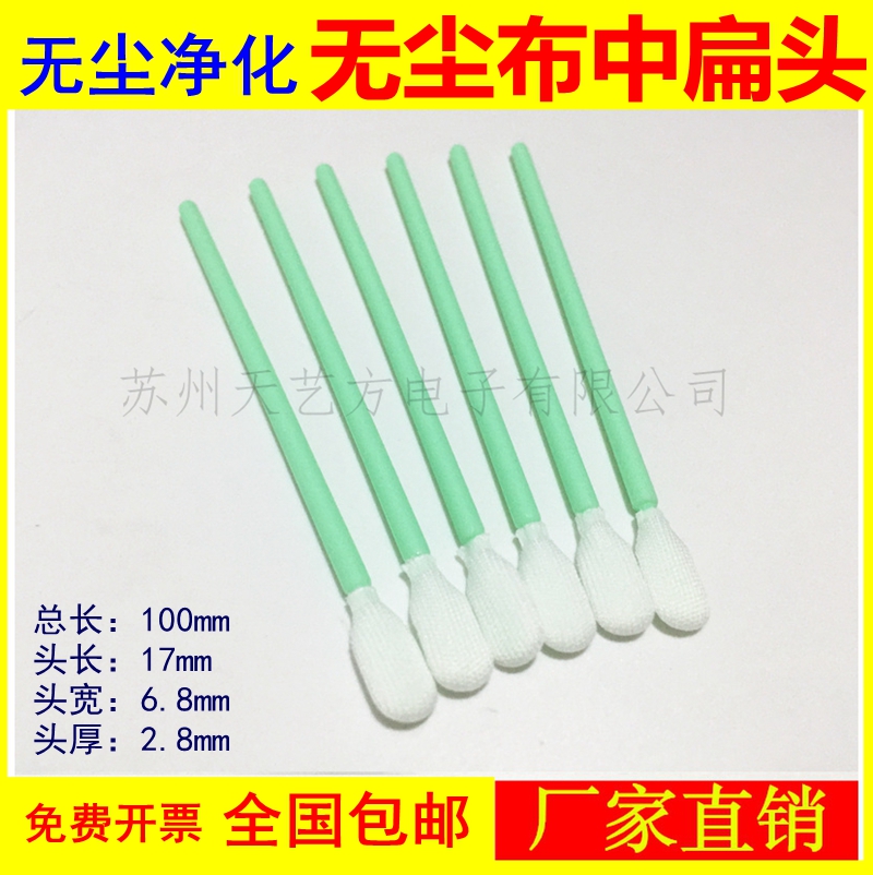 Dust-free cotton stick without dust cloth with flat head cleaning and purifying green rod wiping cotton stick polyester fiber cotton stick bagged