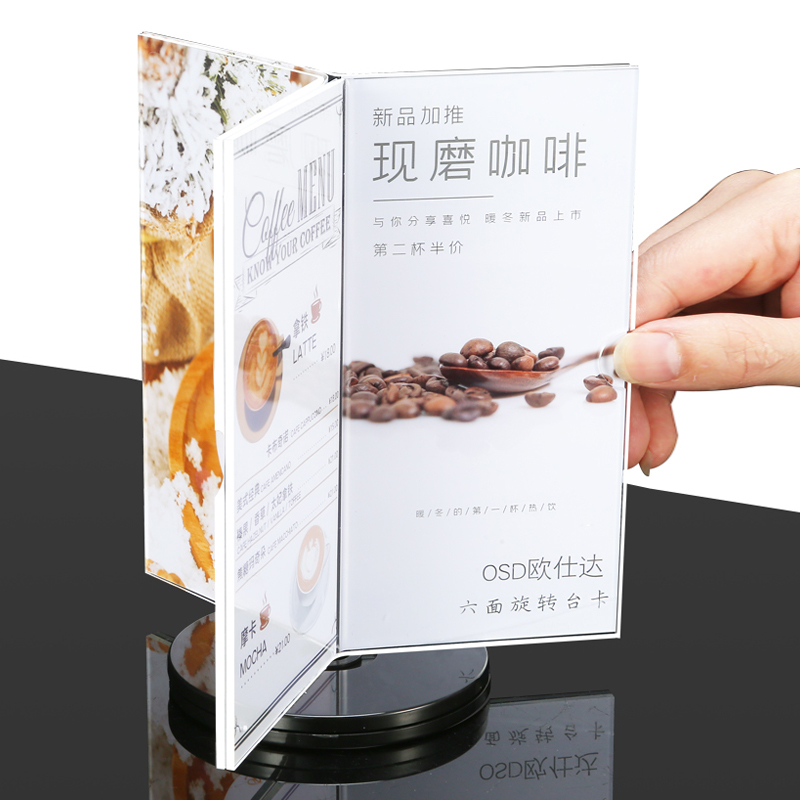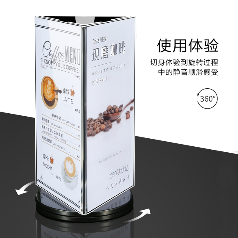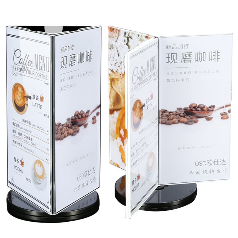 Three-sided rotary table Carwine water plate Acrylic Table Card Holder Six-Face Table Plate Rotary Dining Card Menu Display Cards Triangle table Plate Table Standing Signs Price Waterboard Billboard Dining Room Price List Customised