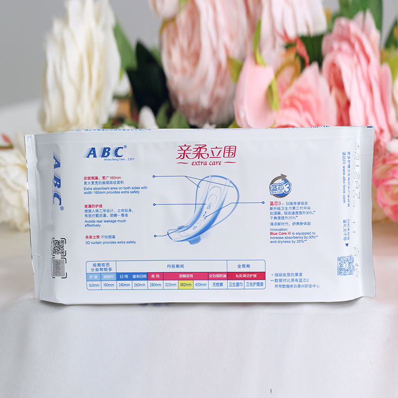 ABC Sanitary Napkins Night with extra-long sweet sleeping pro-flexion light through thin cotton soft cool 3 slices with 382mm anti-leakage K88-Taobao