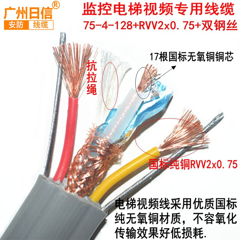 Elevator video cable with power cable elevator monitoring with cable elevator comprehensive line