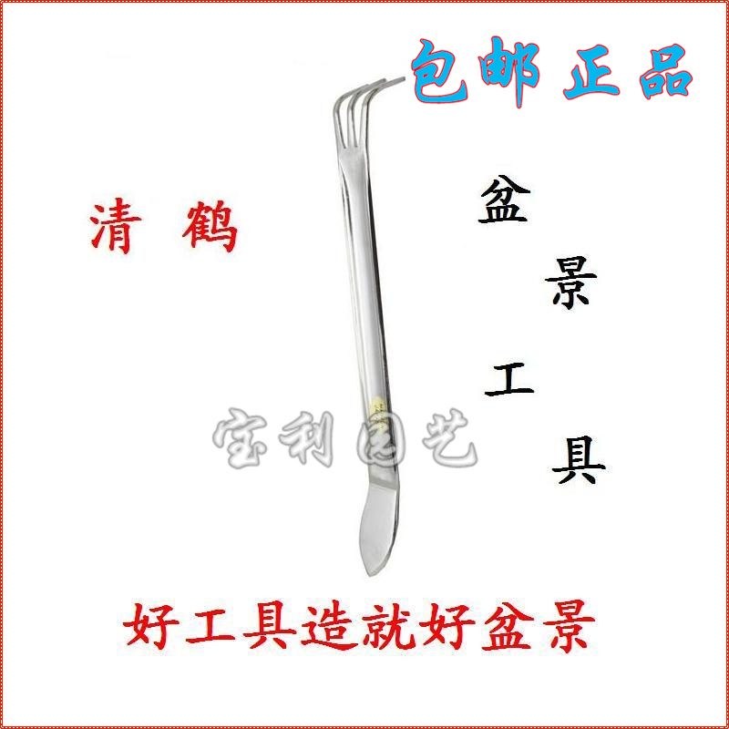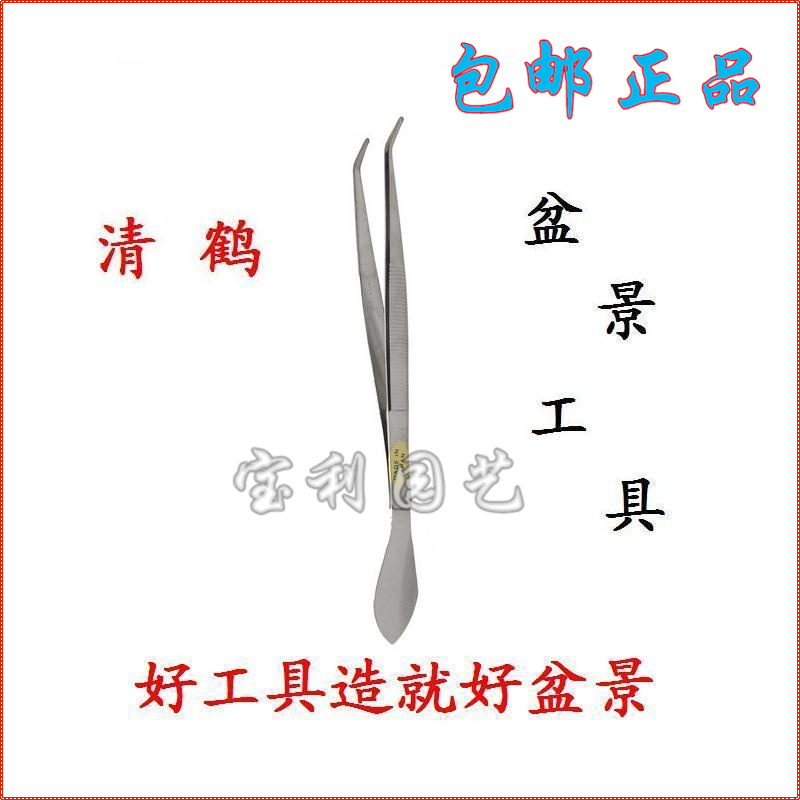 Original Japanese Qinghe bonsai tools Stainless steel elbow tweezers dual-use tweezers Bonsai pry soil pressure soil tools