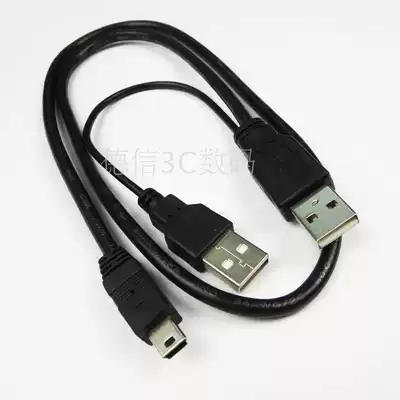 Mini usb portable hard drive cable double USB to Mini USB T data cable with USB sub line dual power supply