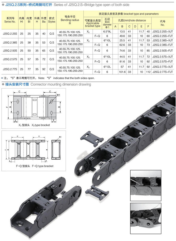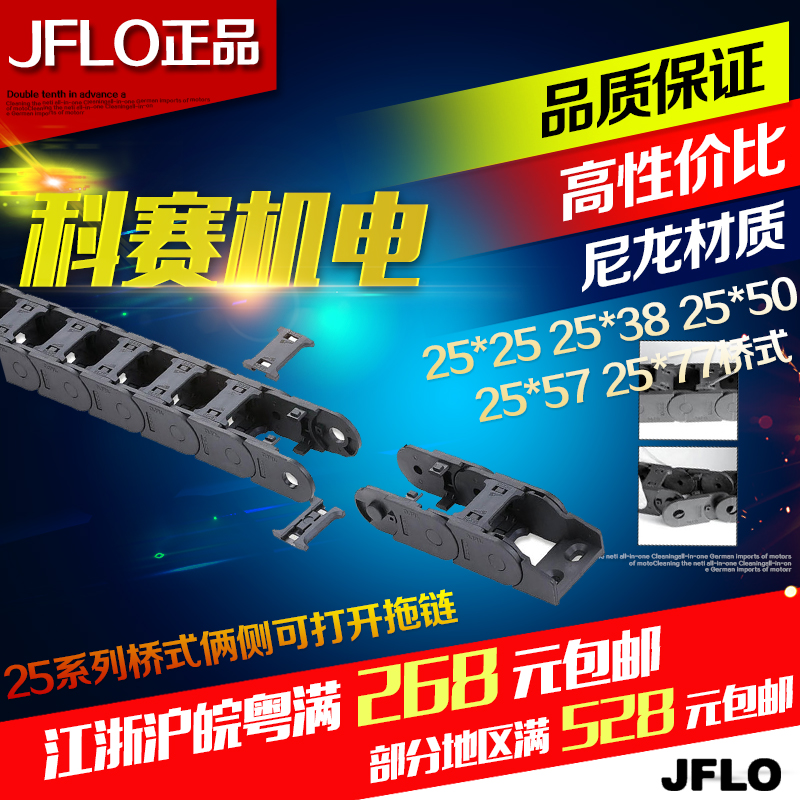 (JFLO)Nylon engineering plastic towline tank chain 25*2538 50 57 77 Bridge two sides can be opened