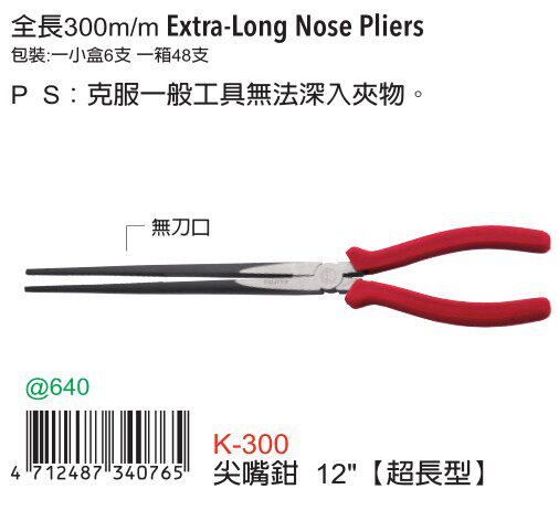 Taiwan imported original K-300 Fuguya extended extra-long pointed pliers 12 inches 300MM mouth length 175MM