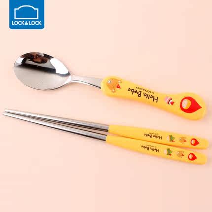 Lock and lock children's tableware stainless steel primary school students cartoon eating chopsticks baby cute fork spoon portable set