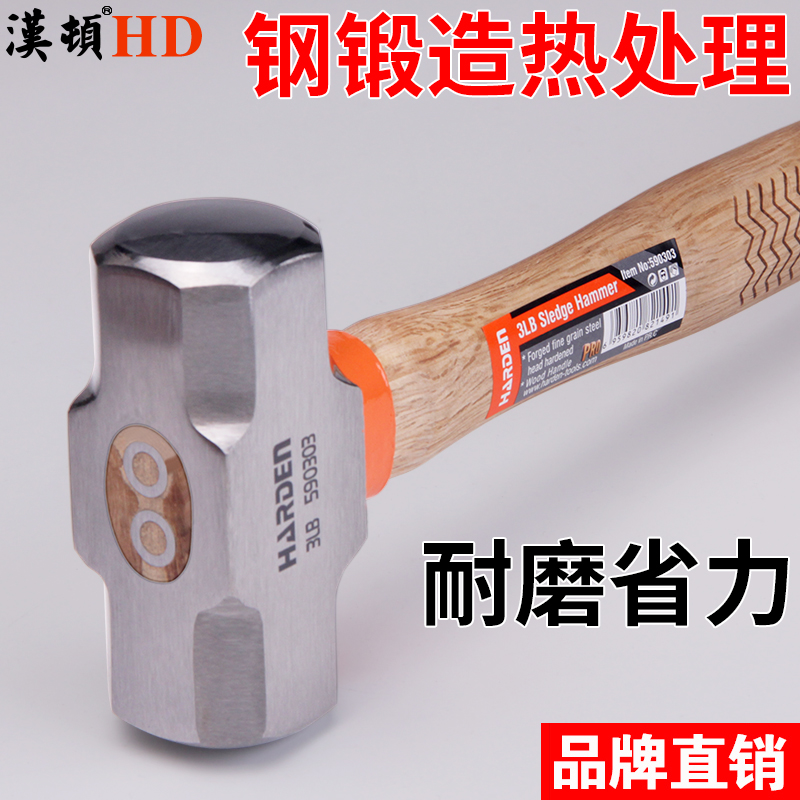 Hanton wooden handle hammer large iron hammer heavy demolition wall pure steel large square head household masonry hammer octagonal hammer iron hammer