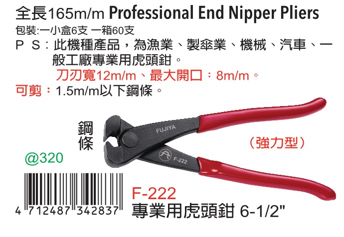 Taiwan imported the original F-222 wealthy subtool FUJIYA with tiger heads 6 inches and 1.6 mm