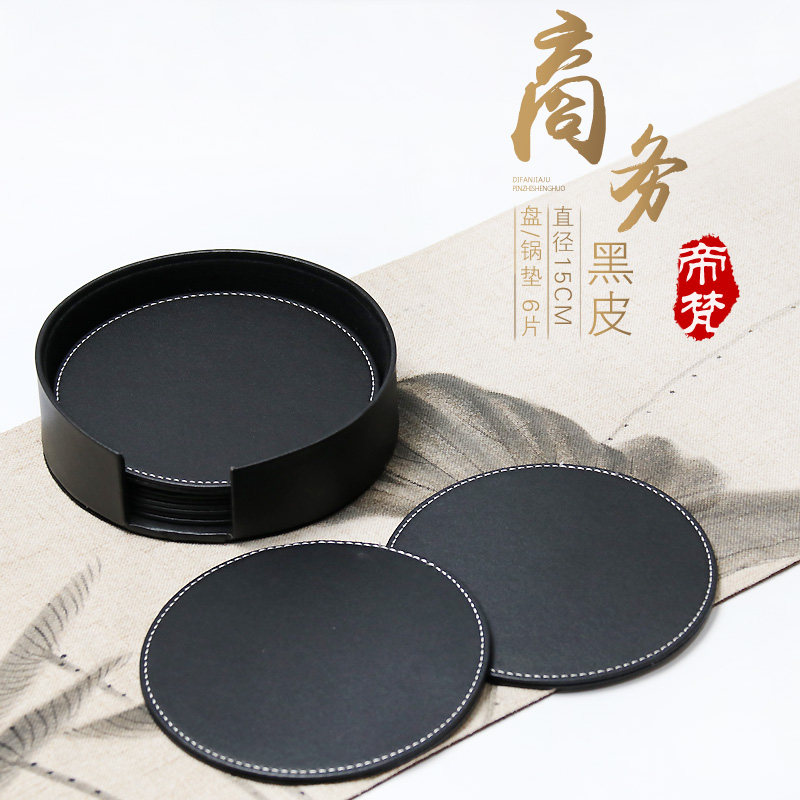 God Van Cup cushion Insured cushion Bowl Cushion Round Cortex Thickened Business Office Black Table Mat Non-slip-Taobao