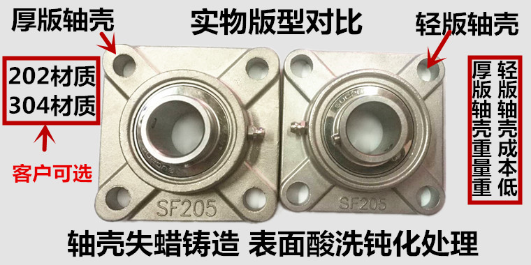 Stainless steel outer spherical bearing with square seat SUCF203 SF204 SF205 206 207 208 209