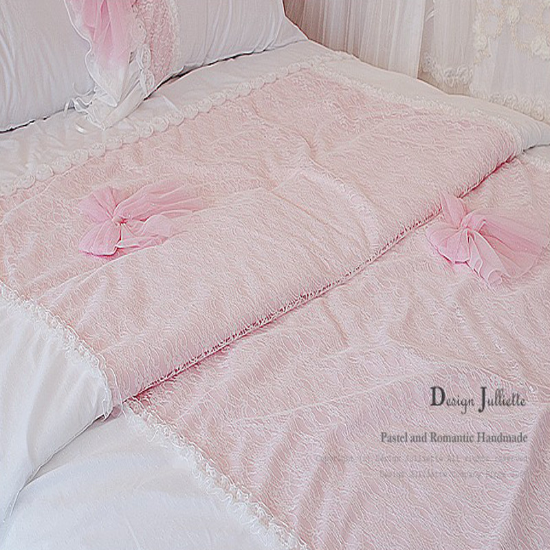 Thickened warm bedding pink romantic style white lace princess bedding four-piece set can be customized