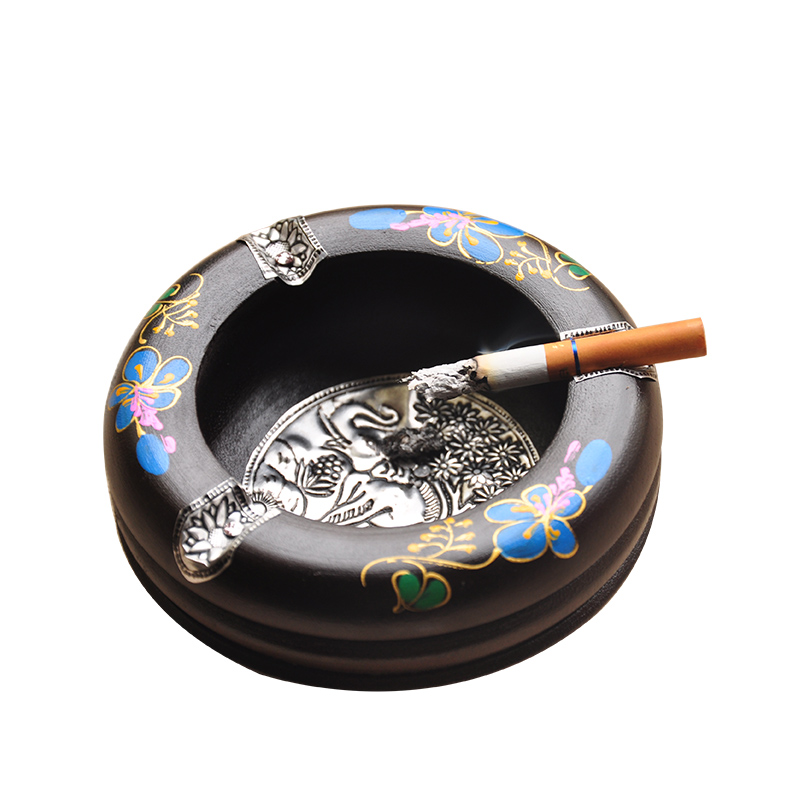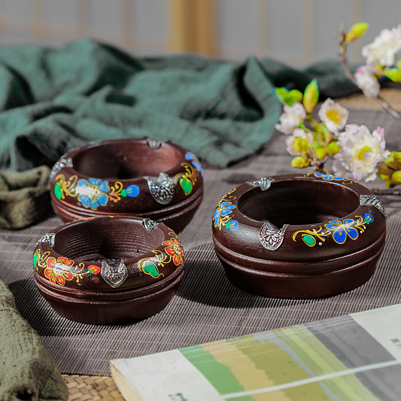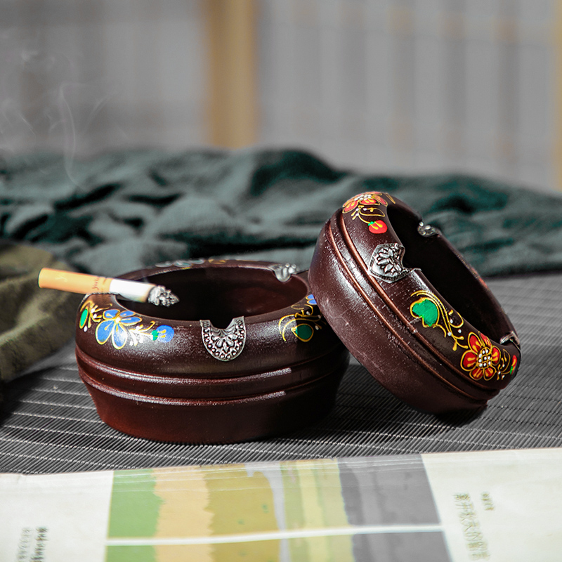 Thai home living room retro creative personality wood solid wood Ashtray Office Tea Table Chinese Wood Cigarette Cylinders