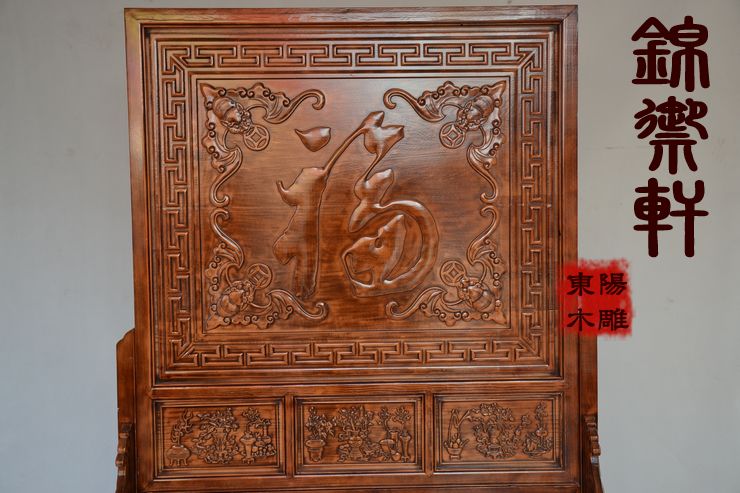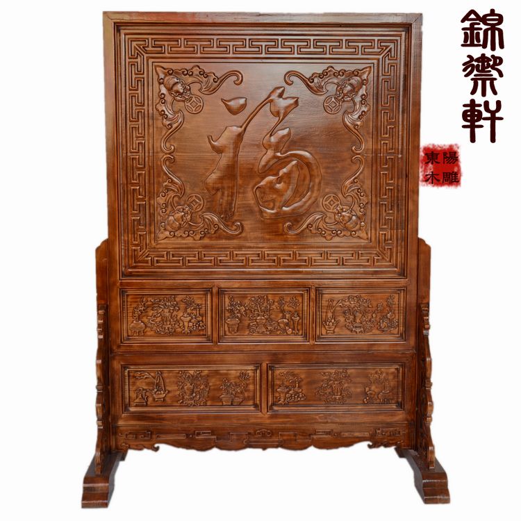 Flower opening rich and expensive landing screen Dongyangmu Wooden Sculpture Seat Screen Inserted Screen Fu Character Screen Xuanguan Partition Solid Wood Imitation Ancient Solid Wood