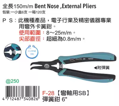 Taiwan imported original F-28 FUJIYA FUJIYA spring pliers 6 inch curved shaft outer card with SB physical shooting
