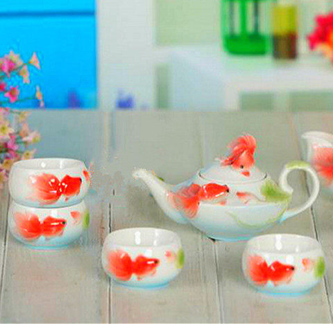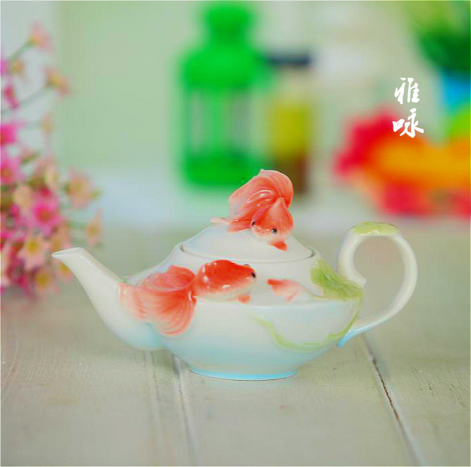 Enamel Porcelain Goldfish One Pot Two Cups Office Birthday Travel Set Group Tea Tea Teapot Wedding flange porcelain