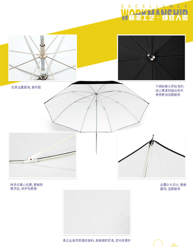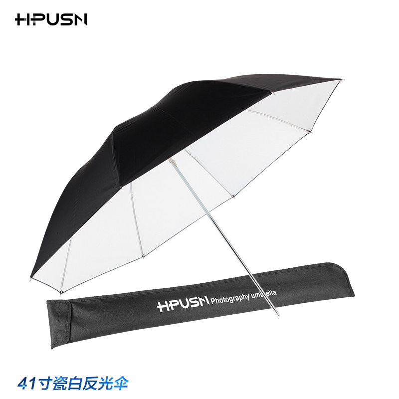 hpusn high-quality 41-inch porcelain white reflective umbrella black and white integrated umbrella handle plus hard ribs opaque