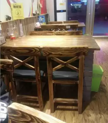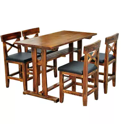 Solid Wood milk tea shop snack bar table and chair outdoor leisure bar table barbecue barbecue table commercial fast dining table bar table