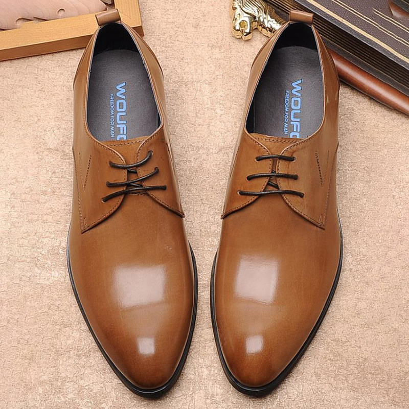 British men's leather shoes Korean version trendy breathable Derby shoes genuine leather formal dress business pointed casual lace-up men's shoes