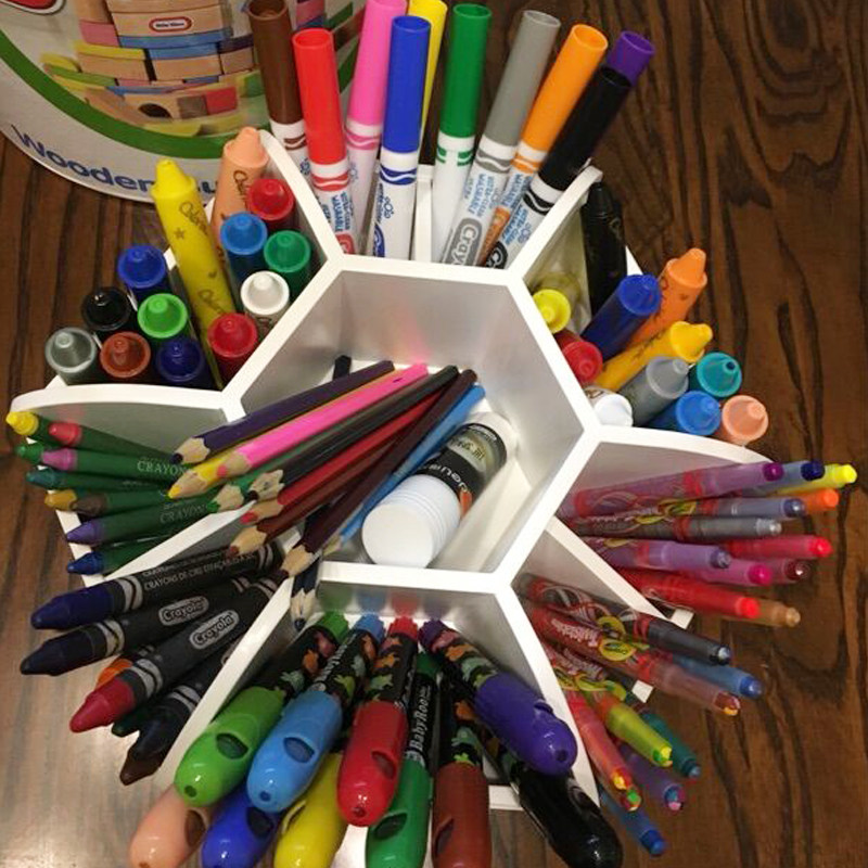 Bean rice baby children's room table hexagonal rotating desktop pen holder makeup brush storage box desktop storage artifact