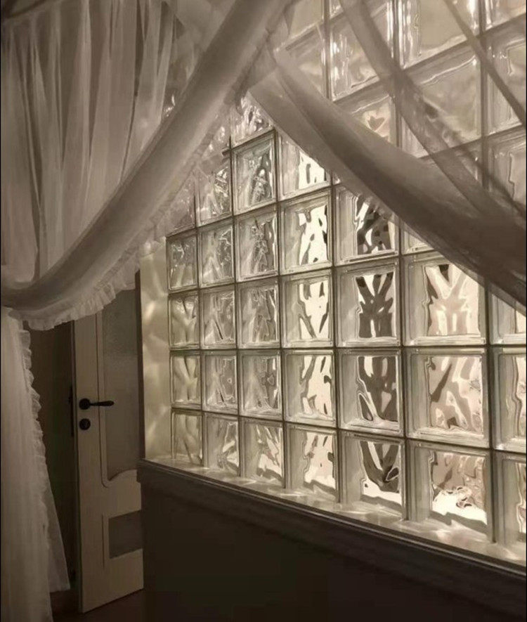 Super white cloud fog glass brick partition Entrance background wall Dry and wet separation glass brick partition Bathroom partition