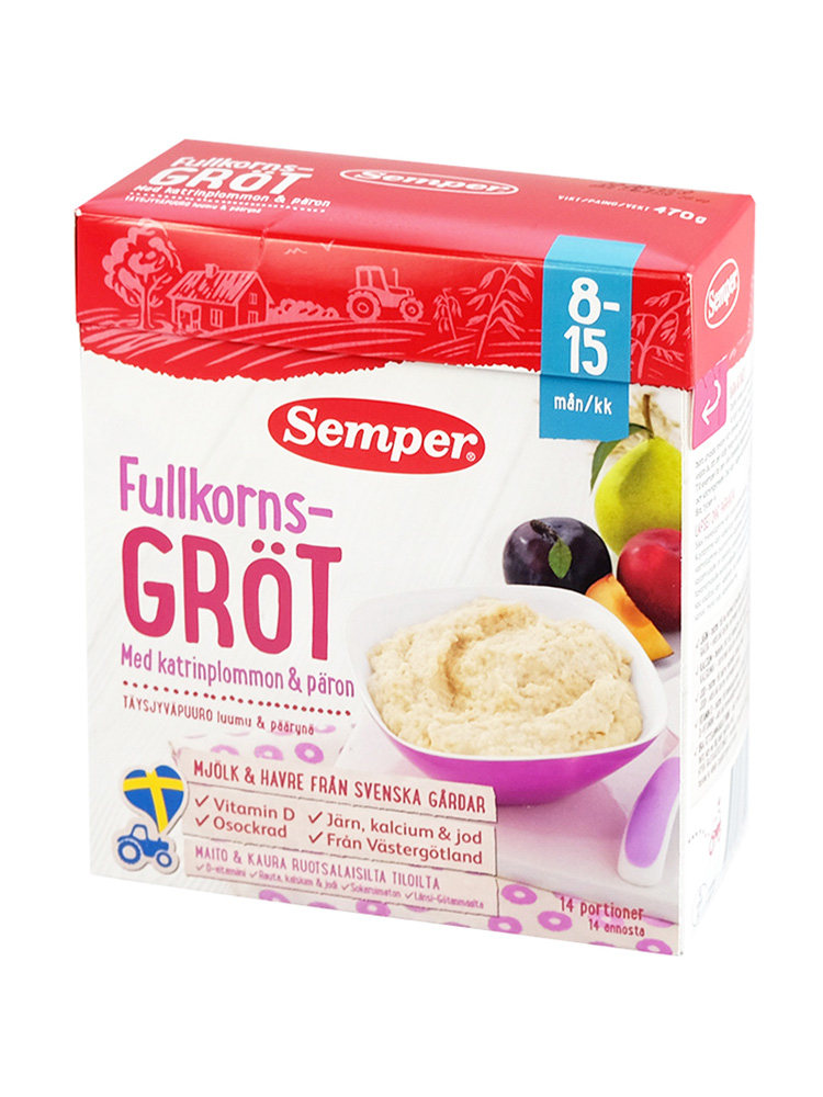 Skimmed milk powder, vegetable oils (palm oil, rapeseed, sunflower seeds), oat flour, Graham powder, wheat flour, whey powder, rye flour, apple juice concentrate, pear juice, minerals (calcium, iron, zinc, iodine), emulsifiers (diglycerides), vitamins (A, D, C, E, thiamine, niacin, B6