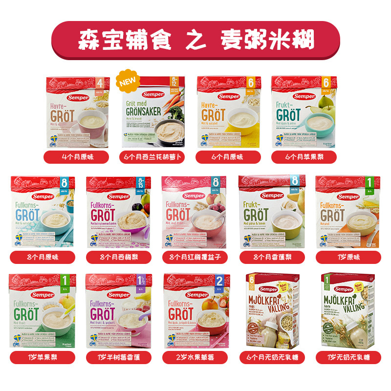 4 months original taste 6 months original taste 6 months apple pear 8 months original taste 8 months prune pear 8 months red plum raspberry 8 months banana pear 1 year old original taste 1 year old apple pear 1 year old raspberry banana 2 years old fruit strawberry 6 months milk free lactose free 1 year old milk free lactose free 6-12 months carrot broccoli