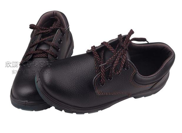 Shield king 9358PU bottom oil resistant and abrasion resistant anti-smashing steel head protective shoe men and women working black leather shoes