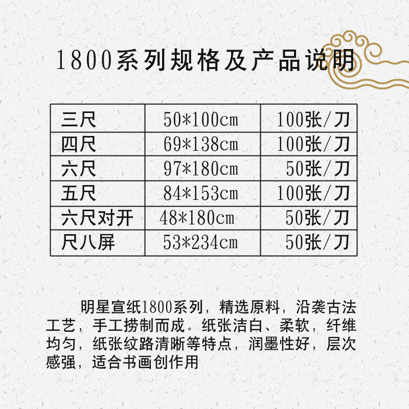 Anhui Star Xuan Paper Handmade Sheng Xuan 1800 Series Three Feet Four Feet Five Feet Six Feet Ruler Eight Screen Cotton Letternet Leather Brush Calligraphy National Painting Special Paper