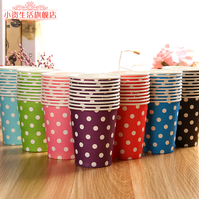 Polka dot color polka dot paper cup environmental protection disposable water cup wedding supplies party birthday spares 7 colors